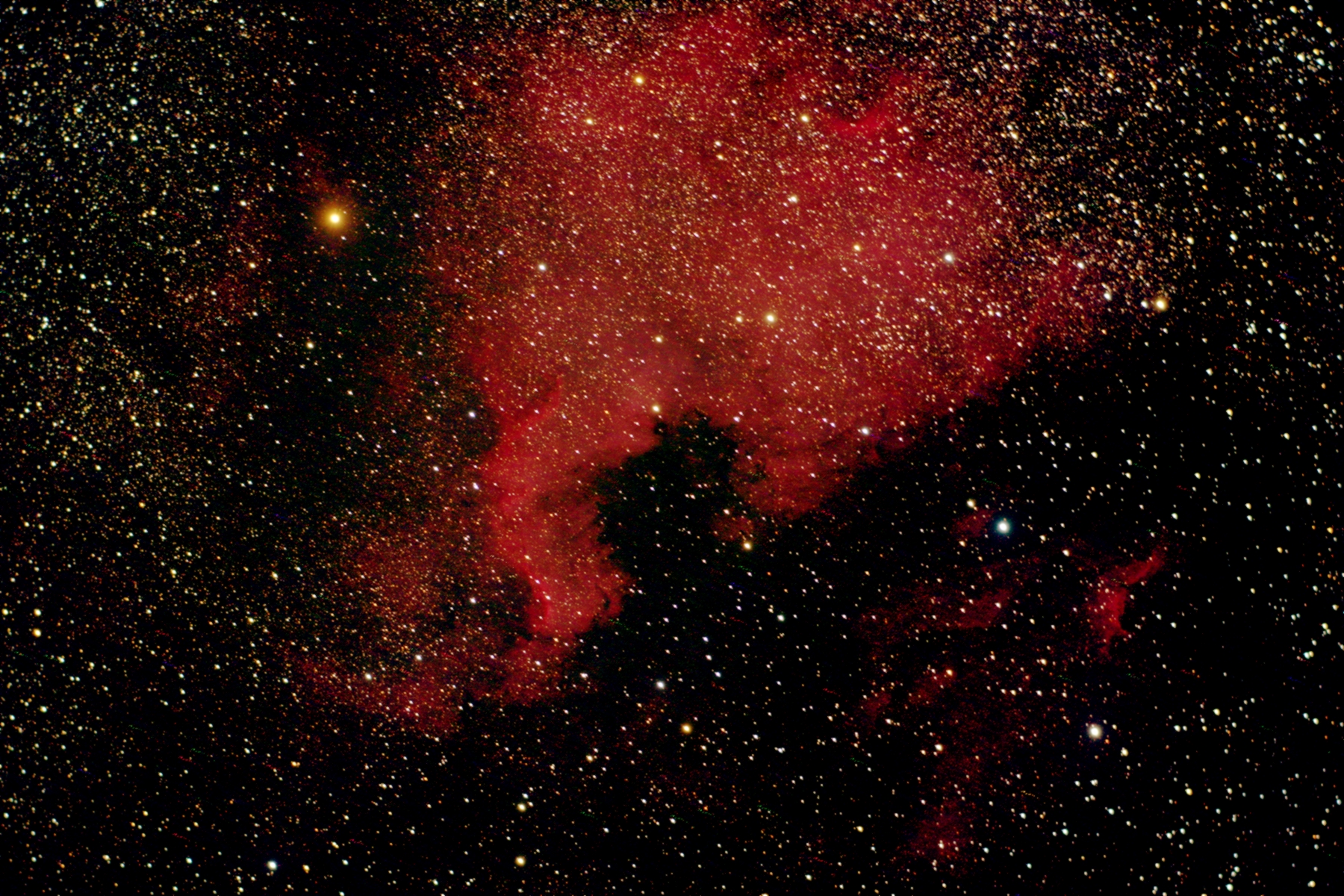 NGC7000, The North America Nebula, is an emission nebula in the constellation Cygnus, close to Deneb. Photographed June, 27, 2014 from the Beretz Observatory in Delanson, New York, USA.